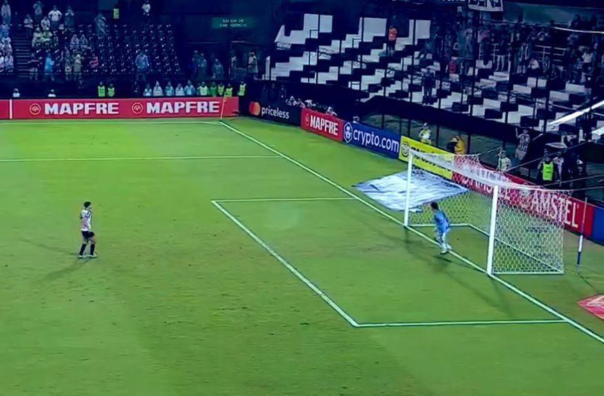 Melgarejo abdicou de apanhar balanço para a cobrança do penálti... e a conversão não lhe correu nada bem. O guarda-redes do São Paulo optou por ficar no meio da baliza, o remate do extremo foi feito para a direita do guardião... mas bateu na parte superior da barra e foi para fora.