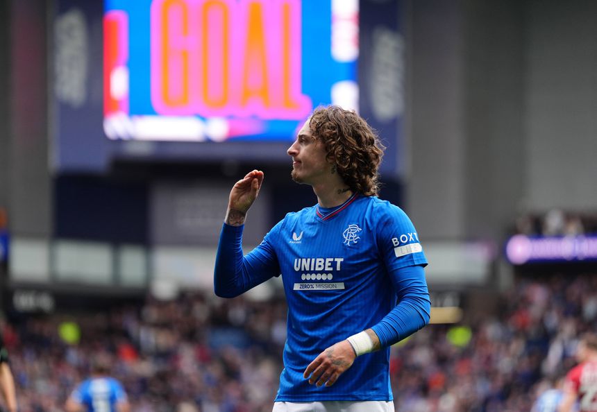 Fabio Silva celebrates scoring the equaliser for Rangers against Kilmarnock