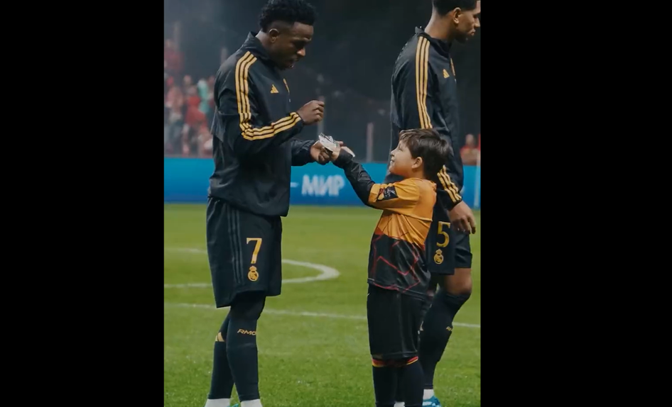 Benjamin, filho de Matheus, entrou de mão dada com Vinícius Júnior no jogo do SC Braga com o Real Madrid e pediu um autógrafo ao internacional brasileiro. Contudo, o jovem esqueceu-se de levar… uma caneta.