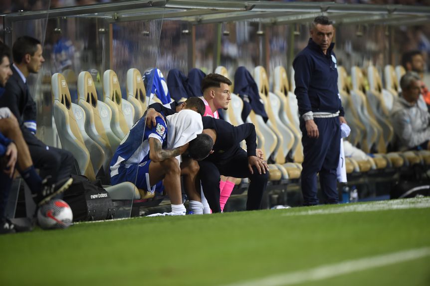 Internacional brasileiro desaproveitou jogada de golo, foi substituído a seguir e confortado pelo treinador dos dragões