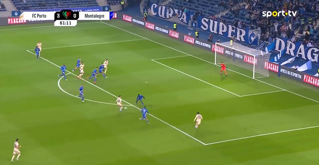 Este foi apenas o seu terceiro jogo a titular pelos azuis e brancos, mas o jogador finalmente marcou e alargou a vantagem para 4-0, numa grande jogada de equipa dos dragões.