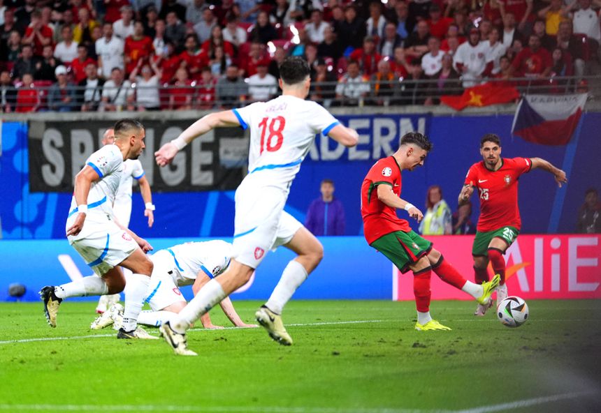 Espalharam-se brasas no relvado em Leipzig. Portugal estava empatado 1-1 contra a Chéquia quando Francisco Conceição aproveitou uma bola perdida na área dos checos para colocar a Seleção em vantagem.