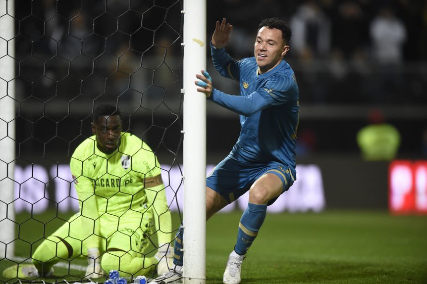 Pepê cabeceou à figura do guarda-redes do Vitória de Guimarães, que ficou muito mal na fotografia...