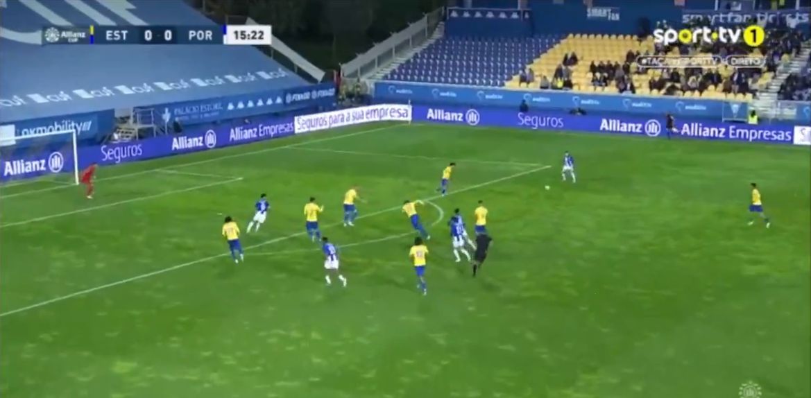 Francisco Conceição chegou a festejar o 1-0 para o FC Porto contra o Estoril para a Taça da Liga, mas após análise do VAR, o belo golo do extremo português foi anulado por causa de um fora de jogo de Galeno. O brasileiro foi apanhado um pouco à frente da linha defensiva do Estoril, no início da jogada ofensiva, e o golo foi revertido.
