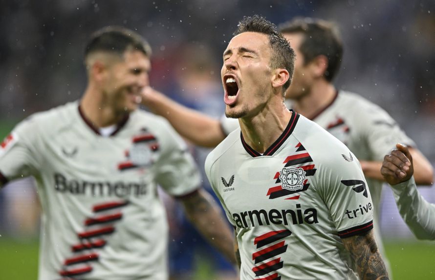 Alejandro Grimaldo vive um grande momento de forma no Leverkusen e no jogo deste domingo, em casa, frente ao Union Berlim, o espanhol voltou a fazer o gosto ao pé com um autêntico golaço.