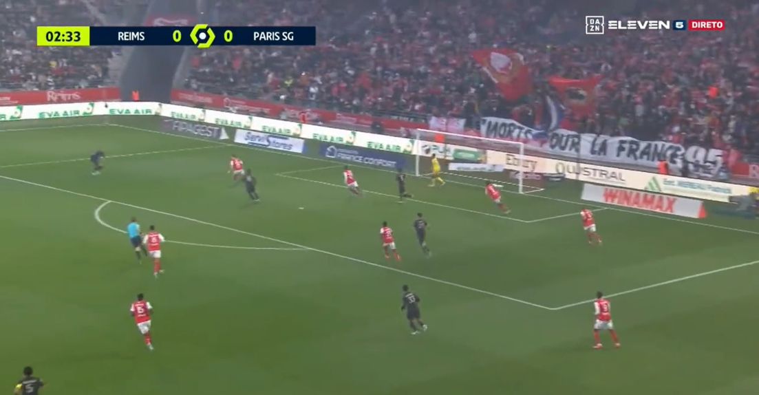 O PSG está a jogar em Reims, num jogo para a 12.ª jornada da Ligue 1, com Gonçalo Ramos no onze, mas foi Kylian Mbappé quem marcou o primeiro golo do jogo e com um grande remate de primeira.