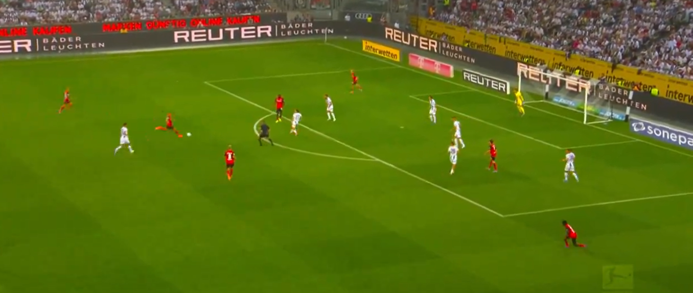 Frimpong cruzou para a grande área, mas um desvio do adversário colocou a bola à mercê do médio suíço que, à entrada da grande área, atirou de primeira e fuzilou as redes do oponente.