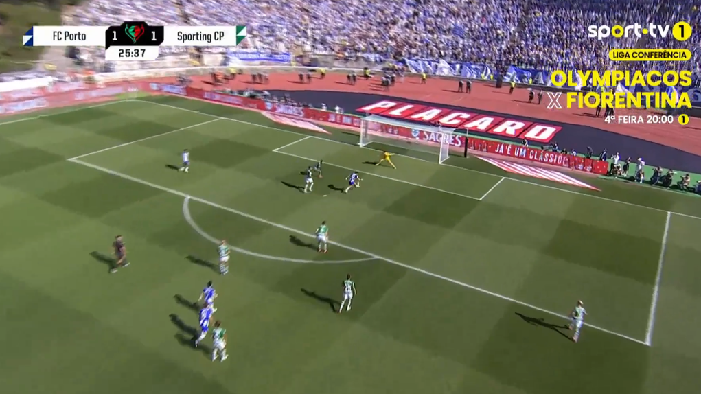 Tudo empatado no Jamor. Primeiro foi St. Juste a marcar, após um pontapé de canto apontado por Pedro Gonçalves, a abrir o marcador. A reação do FC Porto não se fez esperar e Evanilson, aos 25’, igualou a partida após uma má receção de Geny Catamo. O brasileiro, muito oportuno, conseguiu bater Diogo Pinto pela primeira vez.