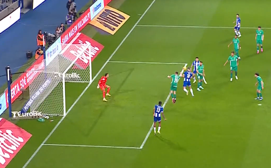 O VAR analisou o lance e confirmou que o camisola 13 dos dragões estava em posição irregular por 4 centímetros.