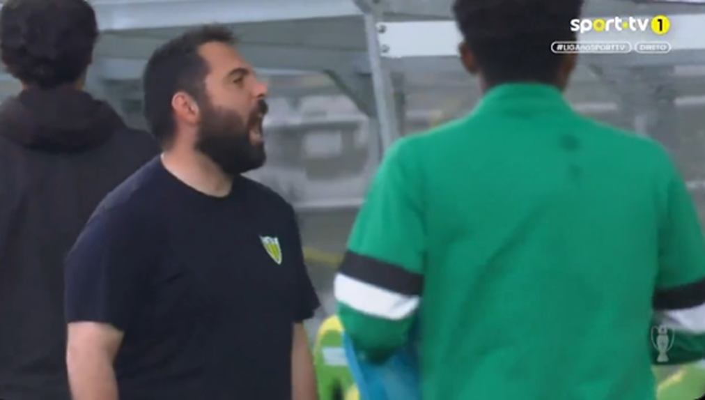 Isso terá estado na origem da discussão entre o treinador Gonçalo Feio e um adepto do Tondela na bancada, quando o técnico regressava dos balneários e que foi captado pela realização da Sport Tv.