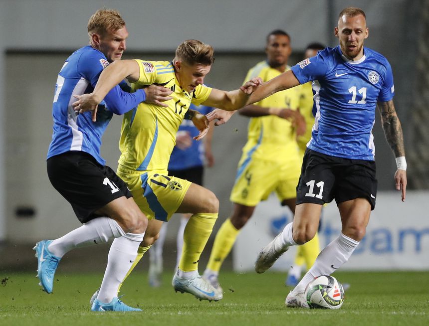 Viktor Gyokeres sob pressão de Joonas Tamm e Mihkel Ainsalu