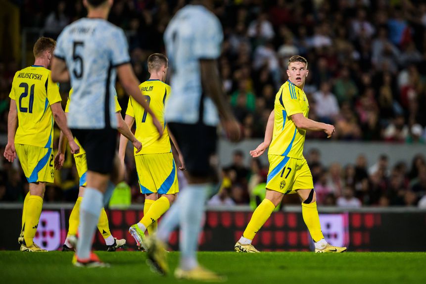 Boa jogada de entendimento do conjunto escandinavo e Gyokeres, com espaço, só precisou de encostar para a baliza de Portugal e fez o primeiro golo da Suécia no encontro.