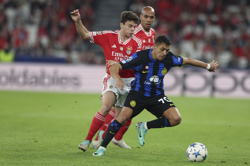 Alexis Sánchez, com penálti bem marcado, empata a três golos o jogo entre Benfica e Inter, da Liga dos Campeões.
