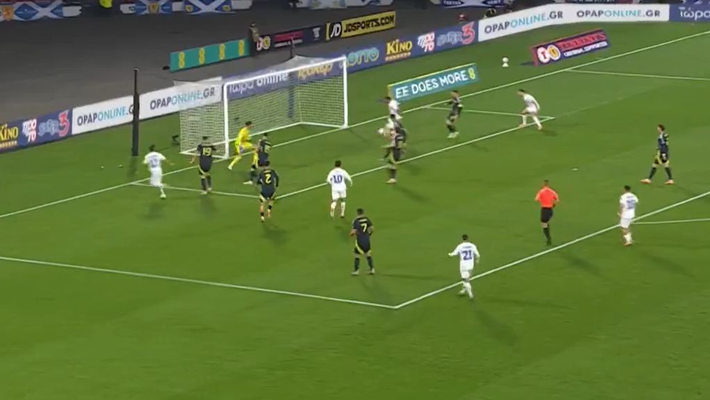 Vangelis Pavlidis teve uma oportunidade soberana para inaugurar o marcador no Escócia-Grécia, em Glasgow, a contar para o apuramento para o Mundial do próximo ano, mas desperdiçou de forma escandalosa. No lado esquerdo da área, Christos Tzolis assistiu e o avançado do Benfica apenas tinha de encostar a meros centímetros da baliza, mas falhou, fazendo lembrar o famoso desperdício de Bryan Ruiz num Sporting-Benfica, em 2015/16, com a diferença de, aqui, Pavlidis nem sequer ter acertado na bola.
