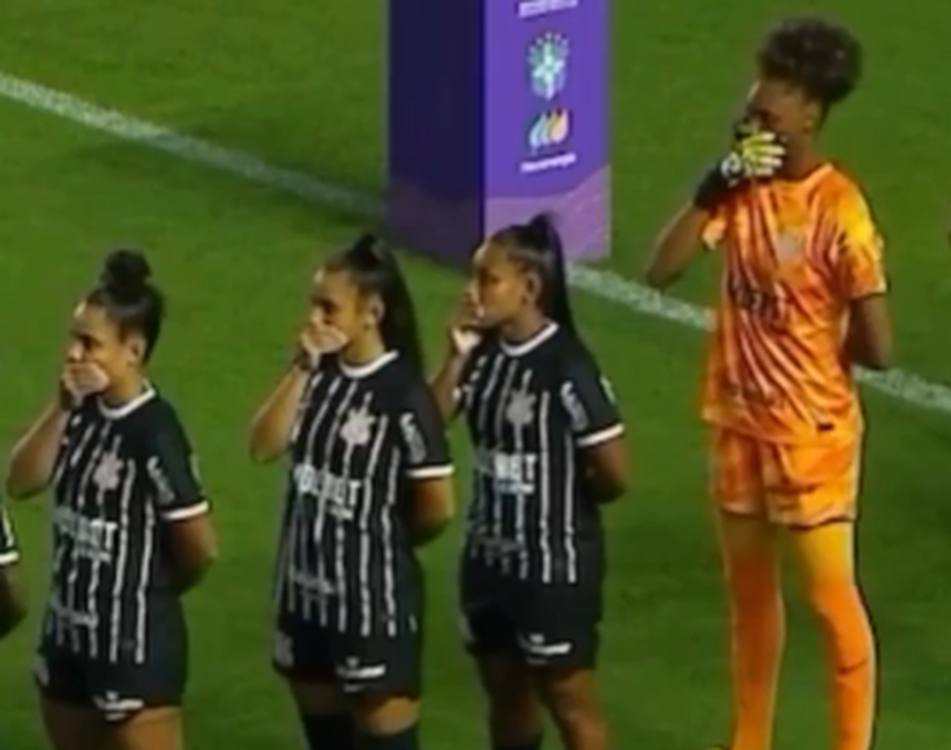 Atletas do Corinthians taparam as bocas antes do início do encontro