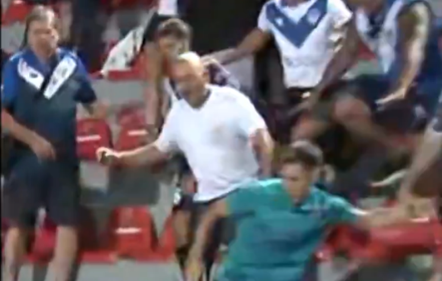 📌El presidente Fabián Berlanga intentó separar y en el tumulto terminó rodando por los escalonespic.twitter.com/b2IBweo9fy
