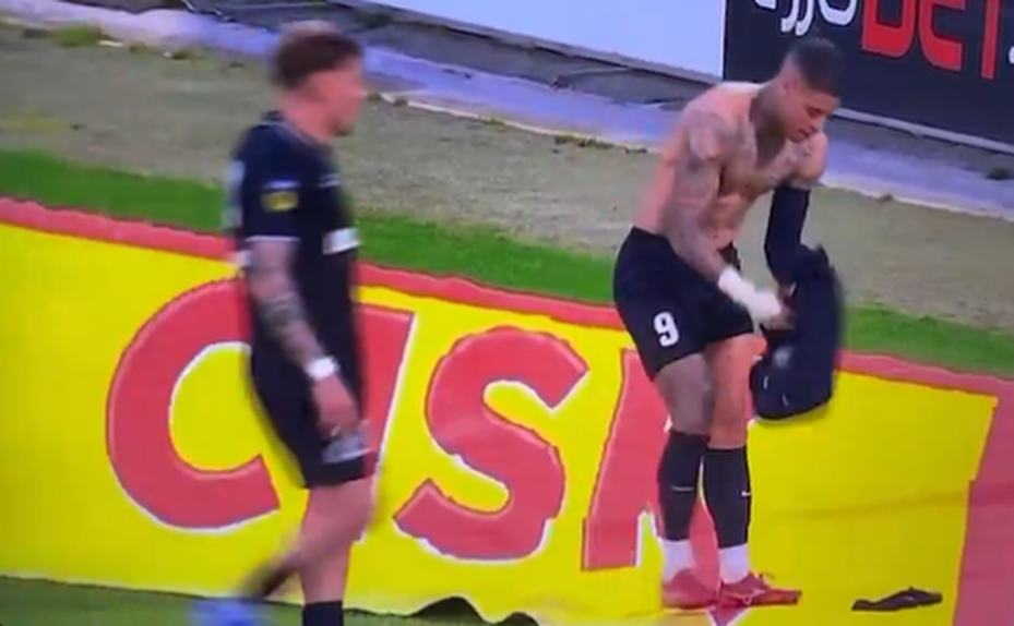 Só que no momento de festejar, por instantes esqueceu-se que já tinha um cartão amarelo e tirou a camisola. Ao aperceber-se ainda tentou disfarçar, tirando também o colete com o GPS, fazendo gestos que o estava a magoar, mas o árbitro não se deixou convencer e acabou mesmo por expulsar o brasileiro.