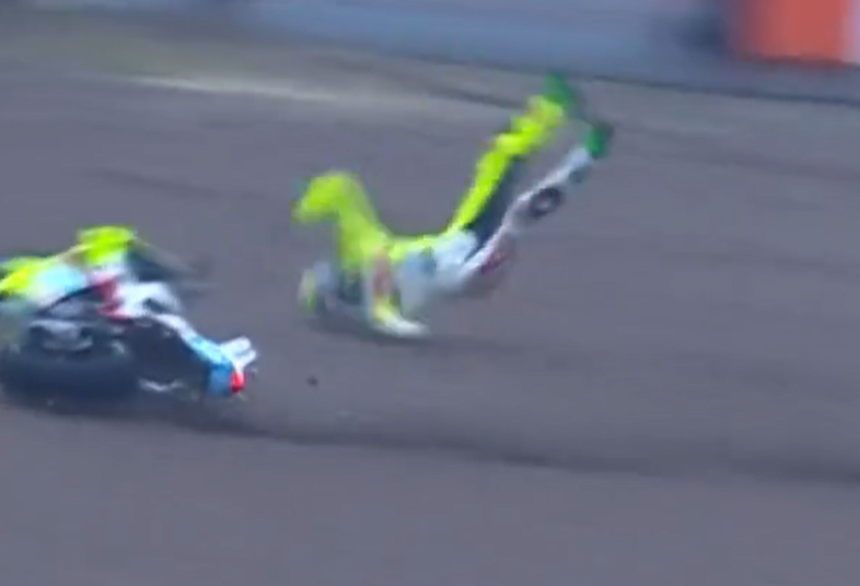 Já durante a qualificação desta manhã, Morbidelli tinha caído na mesma curva quando lutava pela pole position, mas pode-se dizer que foi uma queda muito mais simpática...