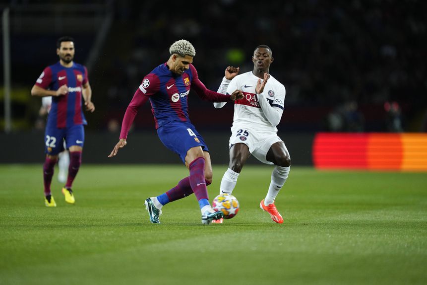 Ronald Araújo viu vermelho direto frente ao PSG, na segunda mão dos quartos de final da Liga dos Campeões, após travar Barcola, aos 30'. Ao sair de campo, o defesa-central do Barcelona fez um gesto polémico.