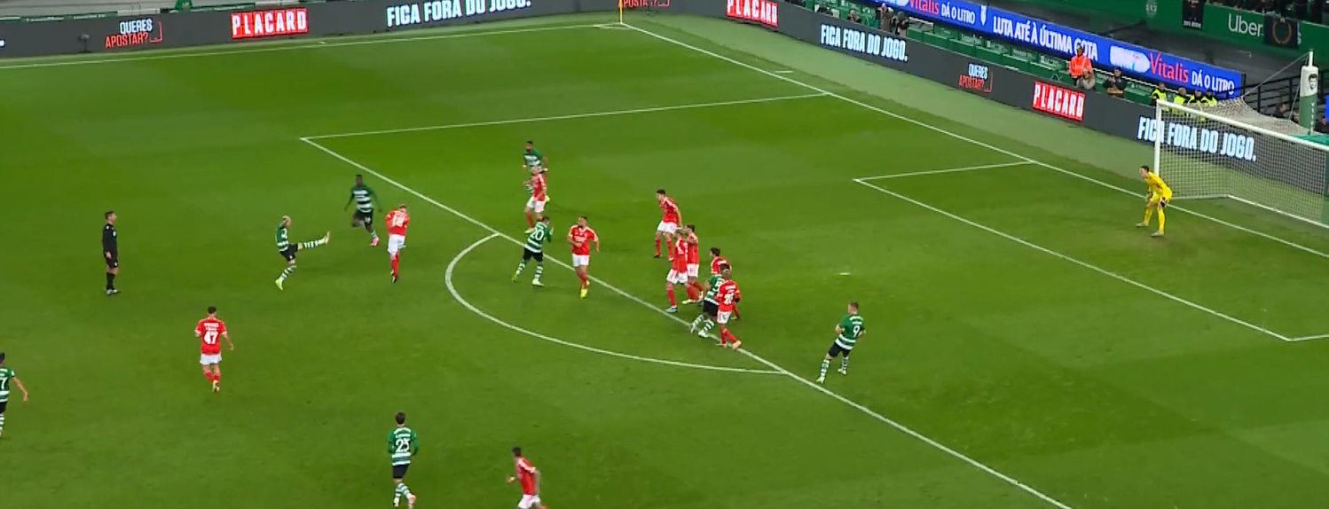 Foi já nos descontos da 2.ª parte (90+3'), que Nuno Santos levantou o Estádio José Alvalade com um fantástico remate de fora da área que colocaria o Sporting em vantagem por 3-1 frente ao Benfica... mas o lance foi anulado por posição irregular de Paulinho, que interferiu na jogada.