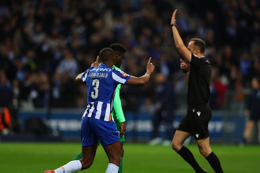 FC Porto-Sporting: Tiago Djaló vê o golo anulado pelo árbitro, João Pinheiro (Grafislab)