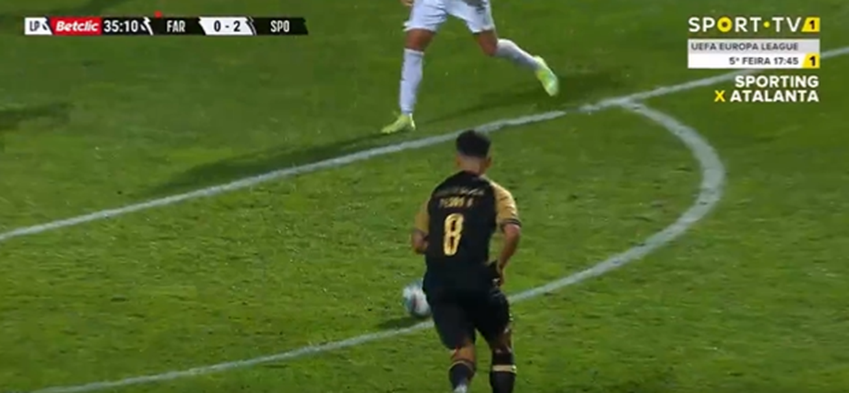 Foi com este golo que Pedro Gonçalves dilatou a vantagem do Sporting frente ao Farense. Depois do 1-0 de Gyokeres, de penálti, aos 21', Pote fez o 2-0 aos 35, num remate à entrada da área que entrou colocadíssimo, junto ao poste esquerdo da baliza defendida por Ricardo Velho.