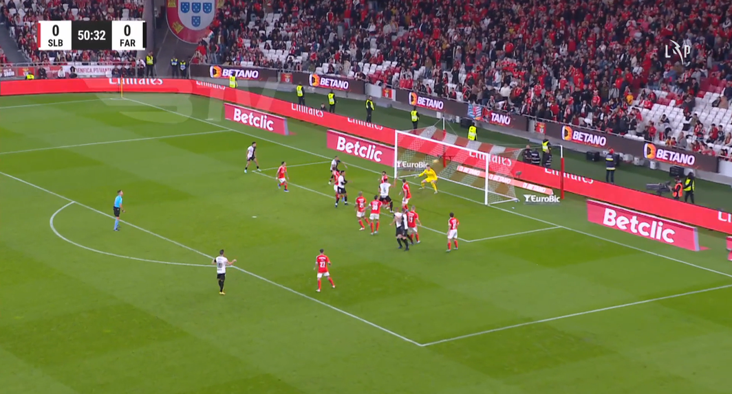 O Farense inaugurou o marcador frente ao Benfica, no Estádio da Luz, aos 51 minutos.