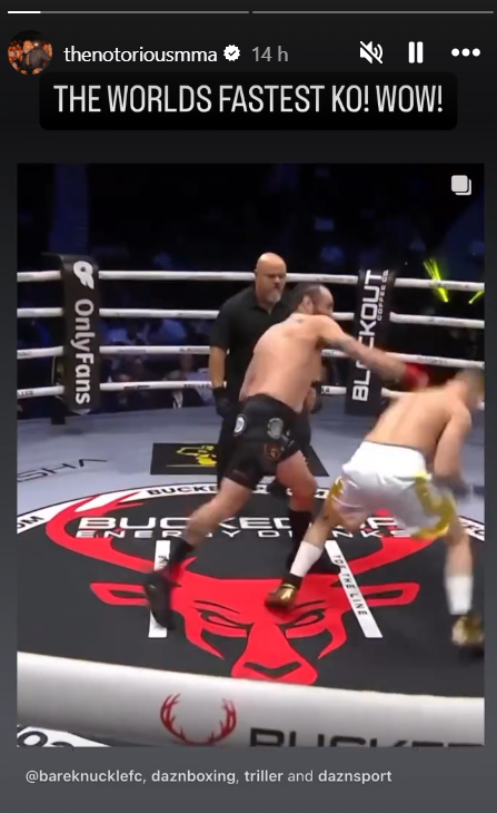 Este recorde até apanhou a atenção de Conor McGregor, que rapidamente reagiu à situação nas redes sociais, deixando a seguinte descrição: «O KO mais rápido do mundo! Uau!», escreveu.