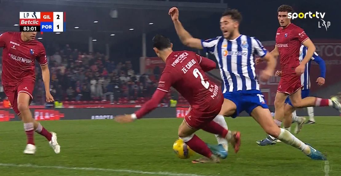 Nico González atingiu com grande violência o tornozelo esquerdo de Zé Carlos, lateral do Gil Vicente, e foi expulso pela primeira vez na carreira. Fábio Veríssimo começou por mostrar o amarelo, mas, alertado pelo VAR, foi ver as imagens e mudou a cor do cartão.