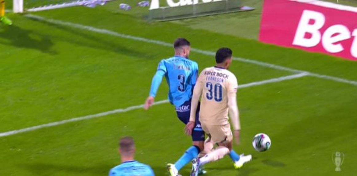 Bruno Wilson derrubou Evanilson aos 20' e Manuel Oliveira não hesitou; na marcação, Taremi não perdoou dos 11 metros