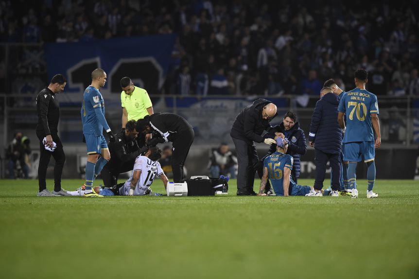 O duelo entre V. Guimarães e FC Porto foi interrompido durante largos minutos devido a um arrepiante choque de cabeças entre Jorge Sánchez e Ricardo Mangas, laterais dos dragões e vimaranenses, respetivamente. Ambos ficaram muito mal tratados, com as camisolas com bastante sangue, e foram assistidos pelas equipas médicas durante longo período, no relvado.