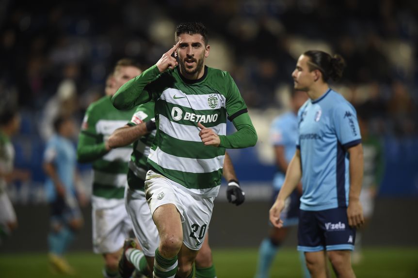 Sporting dilata vantagem na sequência de livre cobrado por Pedro Gonçalves, à maneira curta, no lado direito, Com Trincão a fazer um cruzamento milimétrico para Paulinho cabecear com sucesso.