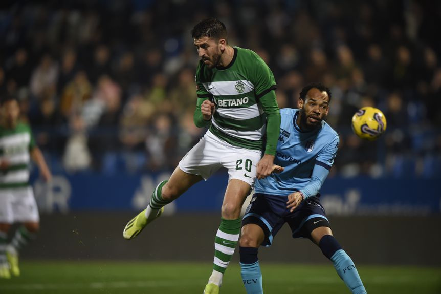 Voltou a gritar-se golo em Vizela, mas este não contou. Esgaio, pela direita, soltou para Trincão, que cruzou para o coração da área, onde Paulinho ganhou posição a Escoval e encostou, de pé esquerdo, para o fundo das redes. Após análise do VAR o lance foi anulado por fora de jogo, por... 12 centímetros.