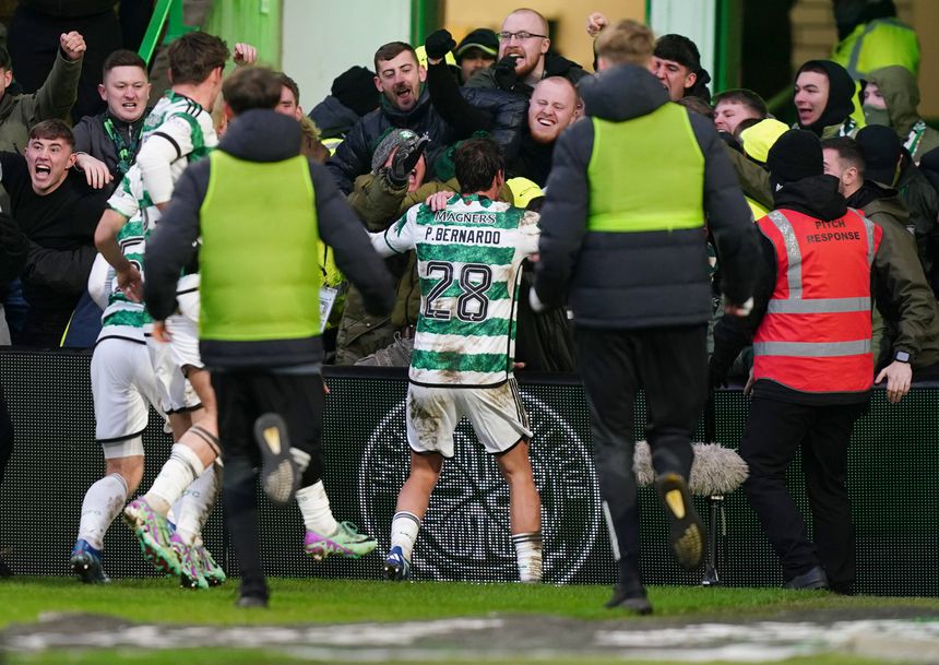 Paulo Bernardo, médio cedido pelo Benfica ao Celtic, festeja com os adeptos (IMAGO / PA Images) - Foto: IMAGO