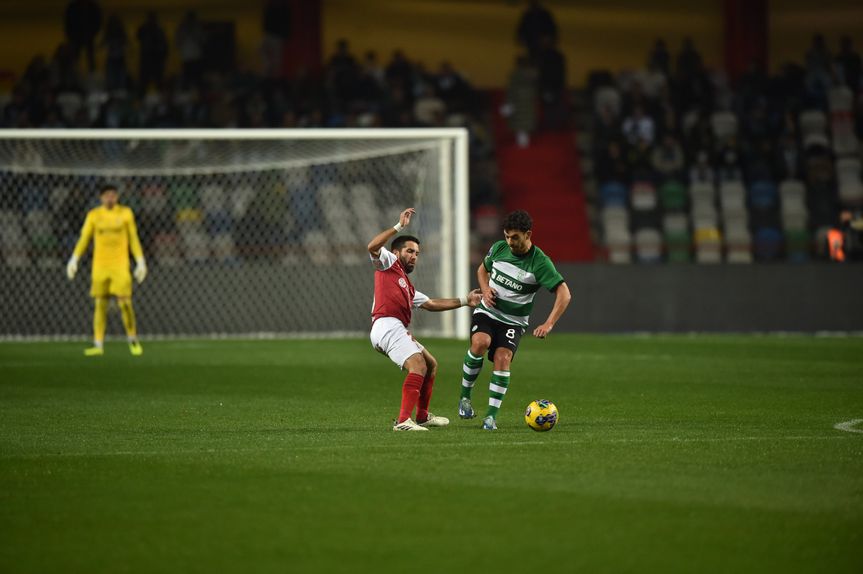 Pedro Gonçalves fez a primeira ameaça do Sporting ao SC Braga. Aos 13 minutos, o médio português recebeu a bola à entrada da área e atirou com estrondo à barra da baliza de Matheus. Seria um grande golo em Leiria. Ora veja:
