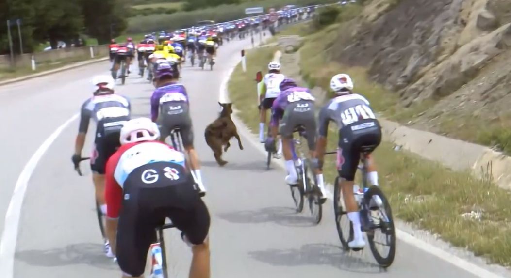 Attraversamento inaspettato e per fortuna senza conseguenze di una capra durante il passaggio del gruppo 🙏🙏🙏#EurosportCICLISMO #Cycling #GirodItalia #Giro #Goat pic.twitter.com/AvoiEFvrB4