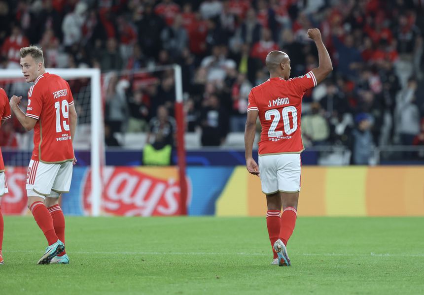 Um, dois, três! João Mário só teve de empurrar para o 3-0, ao minuto 34 do jogo entre Benfica e Inter, da Liga dos Campeões.