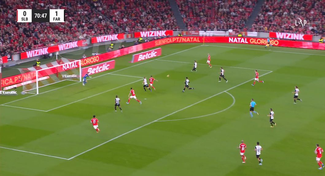 Benfica perdia com o Farense por 0-1 aos 70 minutos