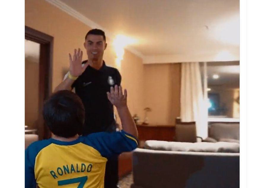 Depois da loucura em Teerão desatada pela presença do craque português, uma criança viu sonho realizado no hotel que acolhe o Al Nassr