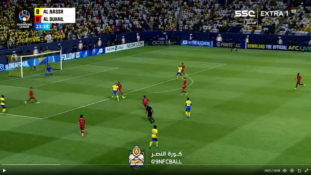 Com um belíssimo passe de calcanhar, Cristiano Ronaldo fez deliciosa assistência para o golo de Anderson Talisca colocar o Al Nassr a vencer o Al Duhail, jogo a contar para a Liga dos Campeões da Ásia.