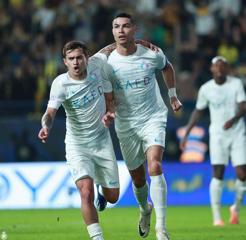 Otávio e Ronaldo celebram o golo do primeiro (Foto: AlNassr FC/X)