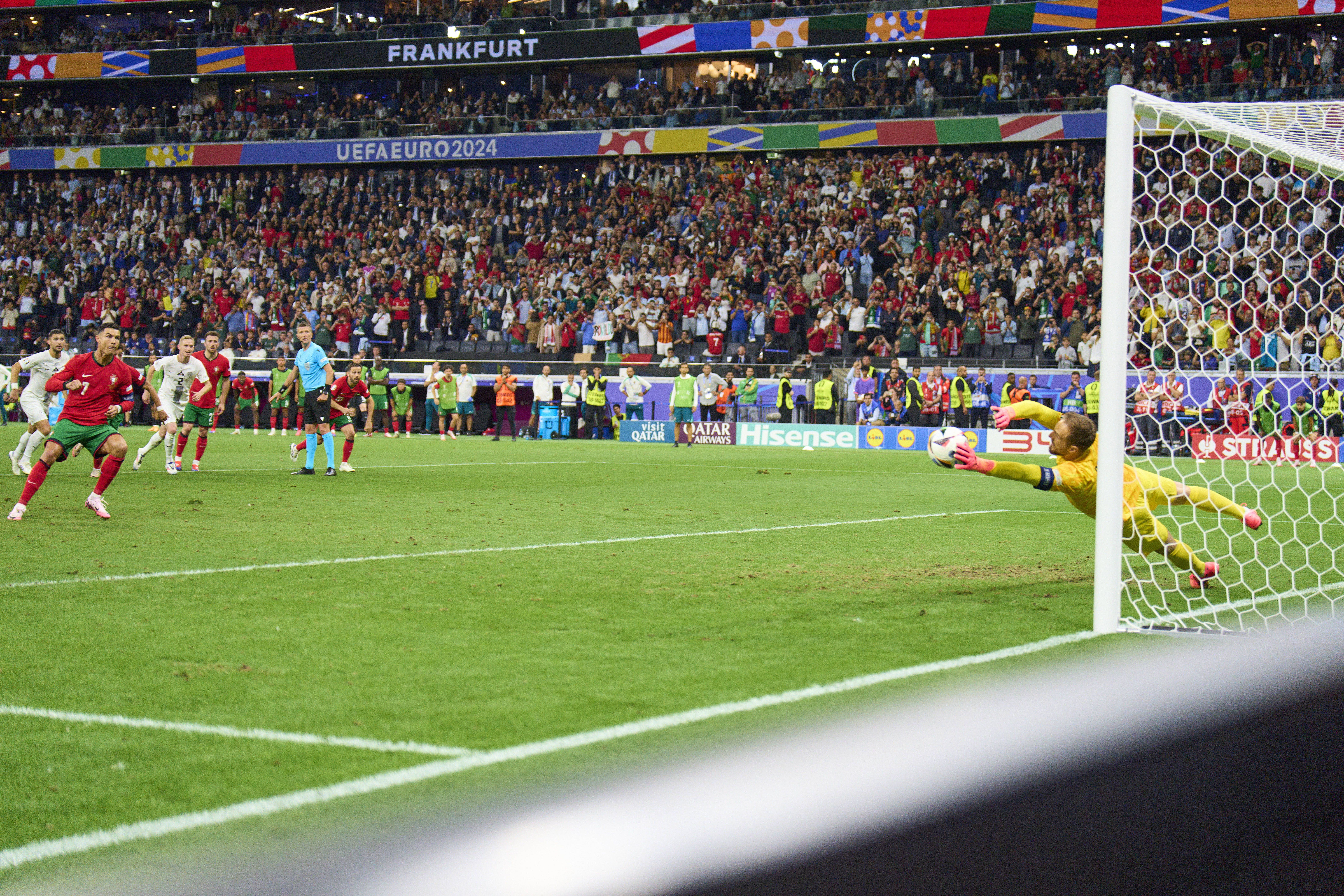 Cristiano Ronaldo desperdiçou uma grande penalidade, aos 105 minutos. Oblak defendeu o remate do capitão da Seleção Nacional.