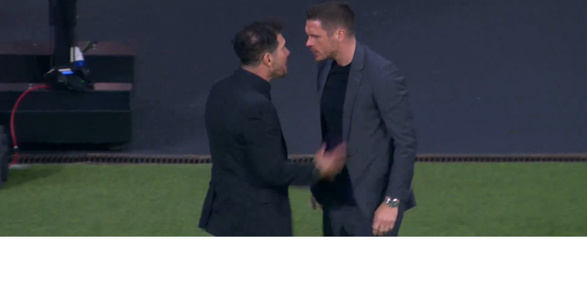 Diego Simeone não gostou da reação e chegou mesmo a empurrar o dirigente desportivo, com muitos gritos à mistura, antes de os dois terem sido separados do confronto.