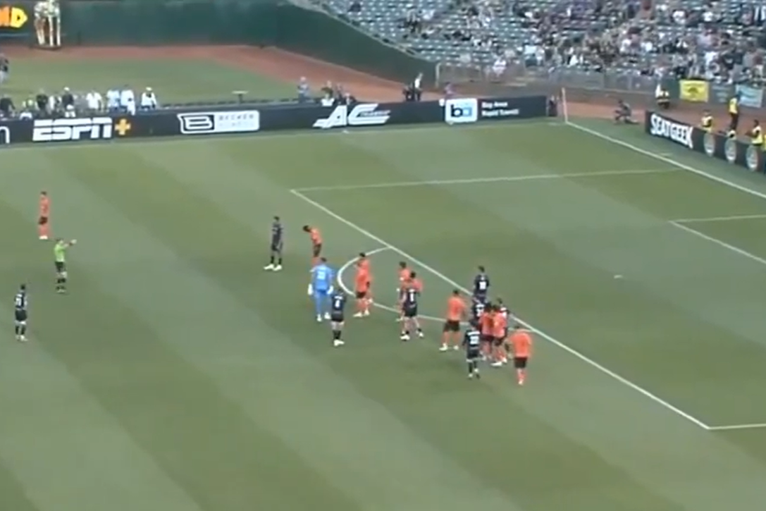 O duelo entre o Oakland Roots e o Orange County, válido para o segundo escalão dos Estados Unidos, ficou marcado por um momento insólito na compensação.