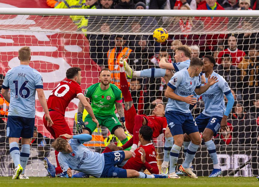 Darwin já introduziu a bola dentro da baliza do Brentford por duas vezes, mas foi apanhado em fora de jogo nos dois lances.