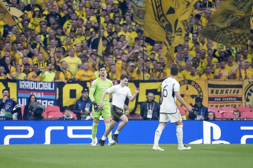 A final da Liga dos Campeões entre Dortmund e Real Madrid ainda nem tenha começado quando, antes do apito inicial, um adepto invadiu o relvado do Estádio de Wembley.