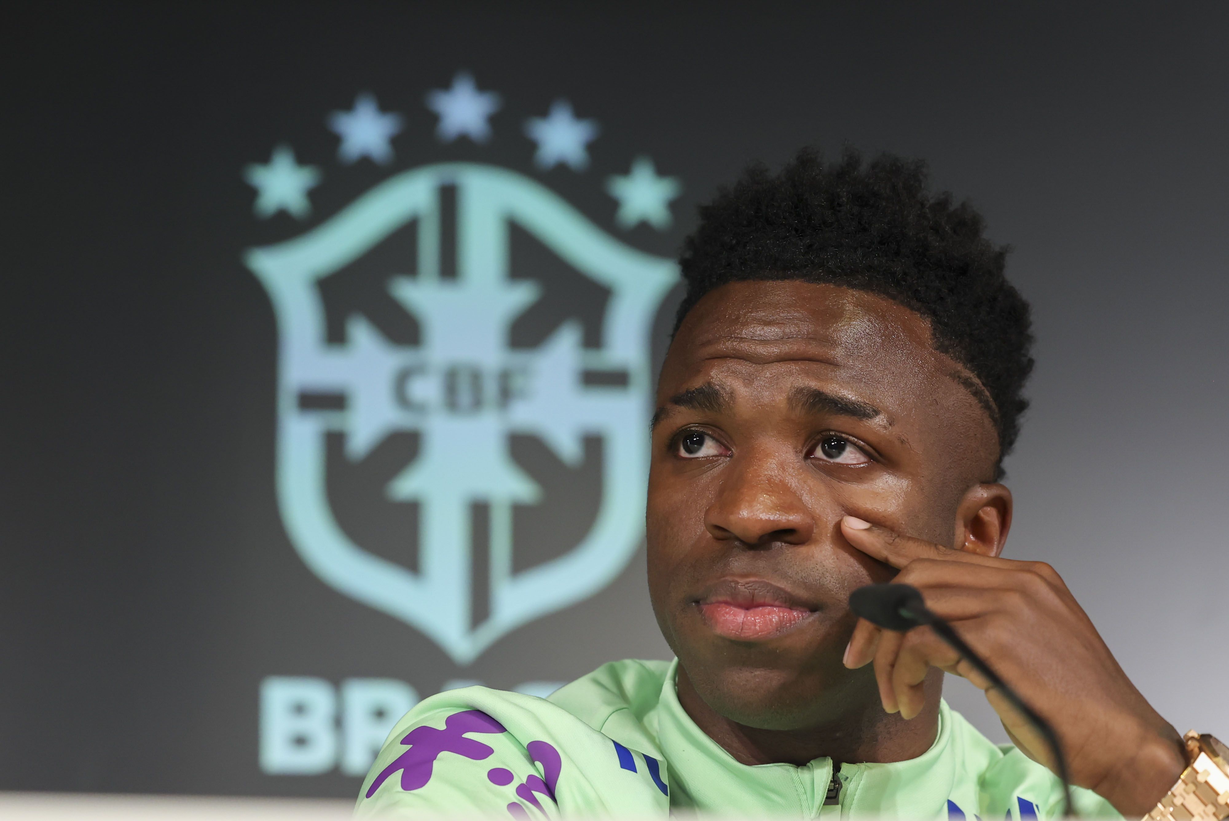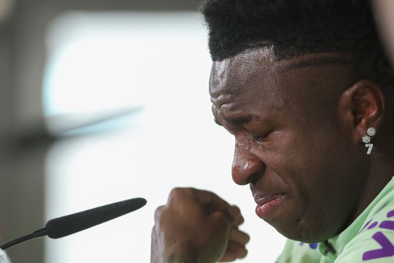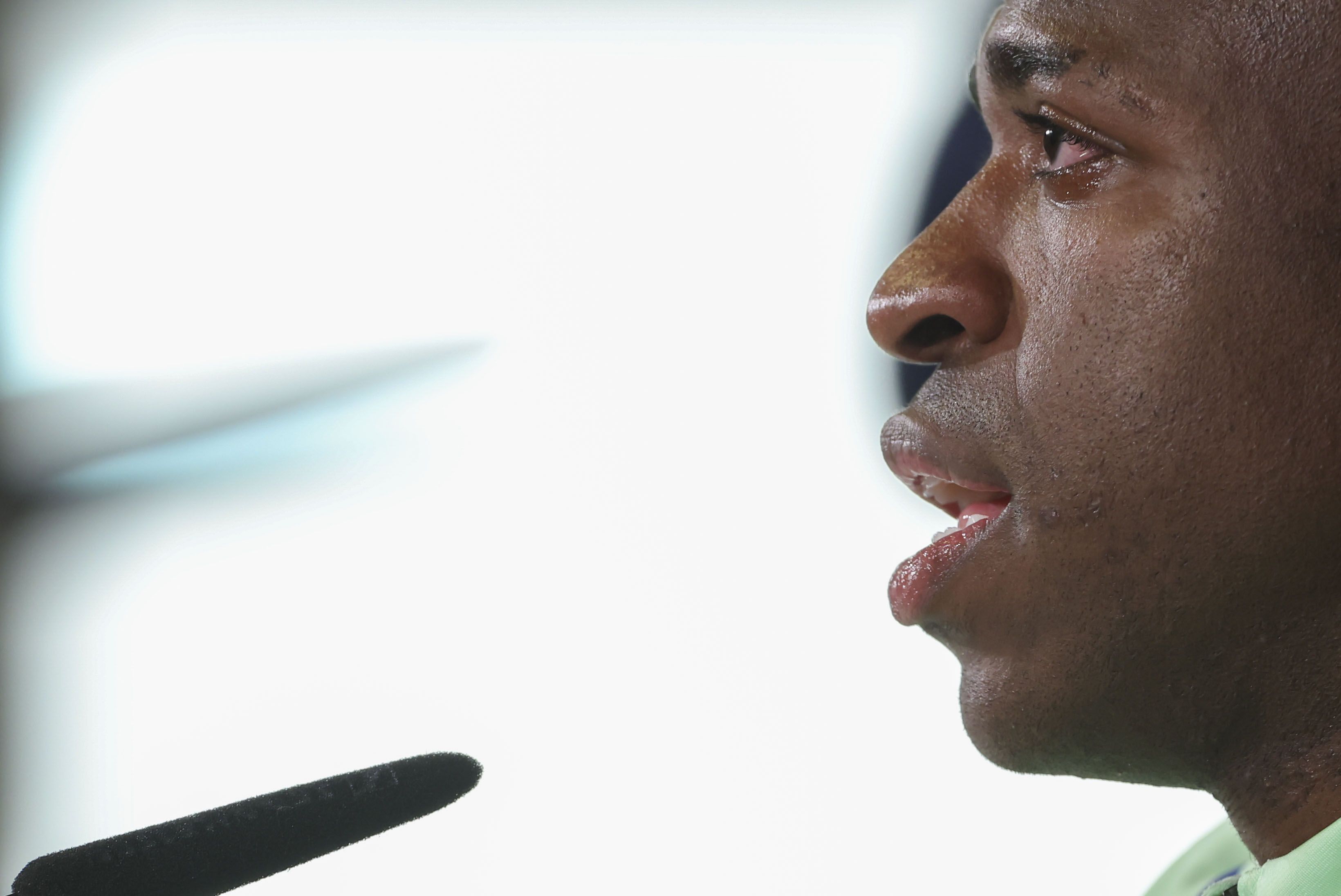 Vinicius Junior chora ao falar de racismo. EPA/Kiko Huesca