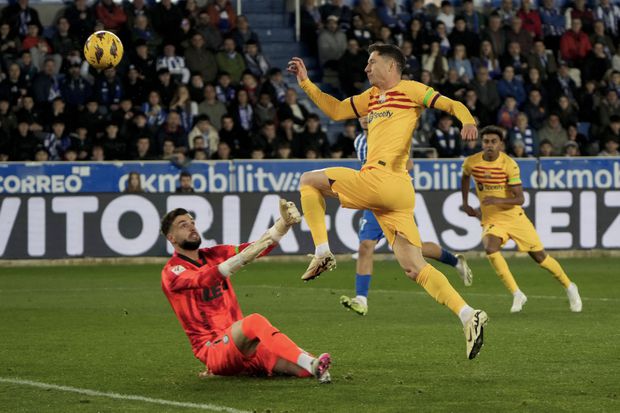 Com João Cancelo de início – e sem João Félix, a recuperar de lesão – os catalães foram surpreendidos pelo Alavés nos primeiros minutos, mas após instantes de sofrimento, assumiram o controlo da situação e chegaram à vantagem num lance aos 22’, desenhado por Gundogan, que fez o passe perfeito para Lewandowski dominar com o pé esquerdo e, com o direito, de primeira, fazer o chapéu ao guarda-redes Sivera.