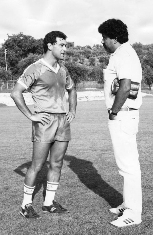 Esta imagem tem 38 anos e captou o momento em que o jornalista de A BOLA Vítor Serpa entrevistava o futebolista José Manuel Delgado. Muita coisa aconteceu, de então para cá. Como, por exemplo, ter entrado para os quadros de A BOLA a 5 de março de 2003 e ter forjado uma amizade blindada com Vítor Serpa, o melhor jornalista com que me cruzei, comunicador nato, escritor de méritos firmados, pensador profundo, e um humanista extraordinário, agraciado pela Presidência da República com o grau de Comendador da Ordem de Mérito, mas, sobretudo, um homem de família e para a família.