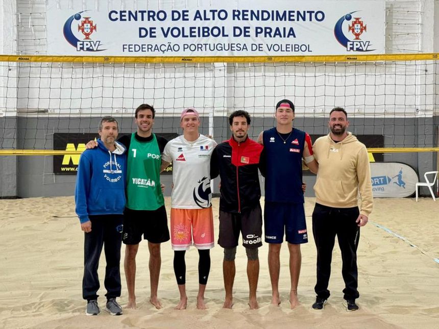 A dupla João Pedrosa e Hugo Campos concluiu mais uma etapa importante da preparação para o Circuito Mundial de voleibol de praia, com uma semana intensa de trabalho conjunto com os franceses Kéran Duval e Arthur Canet, no Centro de Alto Rendimento da modalidade, em Cortegaça.